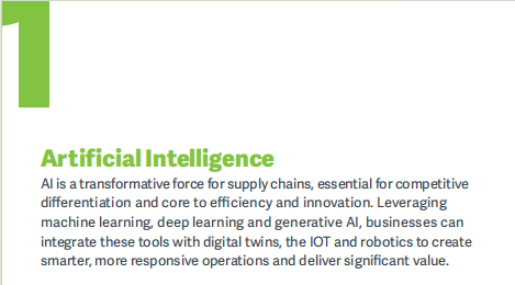 【图源:ASCM《Top 10 Supply Chain Trends in 2026》】ASCM指出,AI不仅是提升预测准确率或优化仓储路径的技术手段,更是企业实现差异化竞争的战略引擎。通过融合机器学习、生成式AI与数字孪生,企业能构建实时响应、自我调优的智能运营体系。在快消品行业,生成式AI已用于快速迭代产品配方,大幅缩短上市周期;预测分析则显著降低库存浪费。但转型并非一蹴而就——企业需先完成数据治理,打破孤岛,建立单一真实数据源,并同步培养具备AI素养的人才团队。唯有如此,AI才能真正从“算法”转化为“价值”。